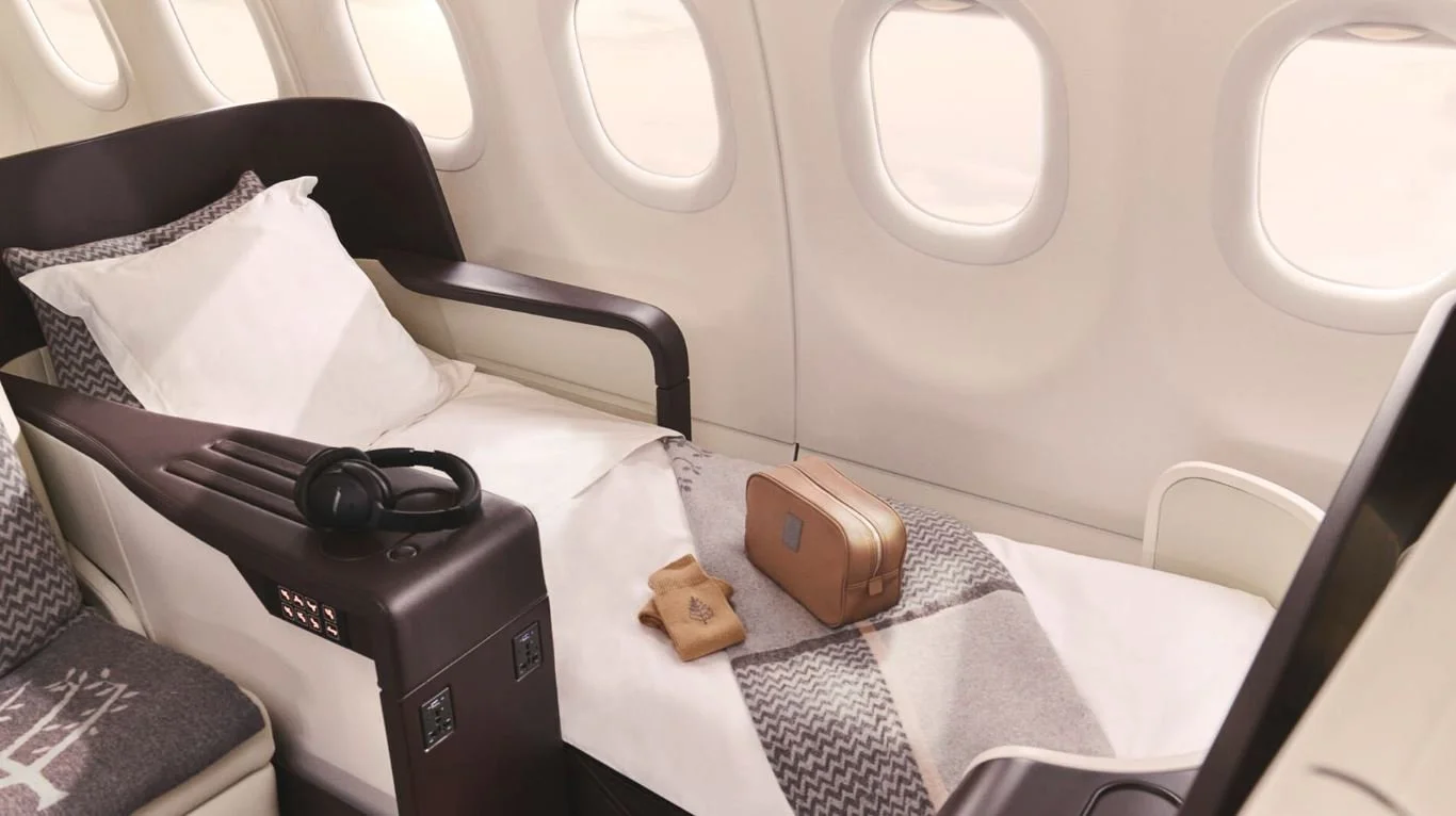 The Four Seasons Private Jet is an airborne haven designed for an elite group of 48 travelers seeking the peak of comfort and convenience. This fully customized Airbus A321, operated in partnership with TCS World Travel and Titan Airways, features spacious flatbed seats upholstered in Italian leather, a social lounge area for mingling mid-flight, Bose noise-canceling headsets, personal iPads for entertainment, and high-speed Wi-Fi to stay connected (or blissfully disconnected, which is my preference). Custom amenity kits from Codage ensure every detail is pampered.