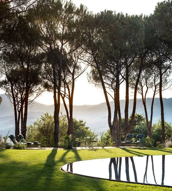 The accommodations at Reschio are as unique as the estate itself. The castle houses 36 individually designed rooms and suites, each brimming with personality—from the Grand Rooms with silver screen glamour to luxurious suites with private gardens. Custom-made furniture, antiques, and curated art create an organic, contemporary feel. For ultimate privacy, seven restored ancient farmhouses dot the estate, each with its own garden, pool, and grounds. Whether you choose a castle suite or a standalone villa, Reschio’s rooms are a masterclass in mixing history with modern luxury.